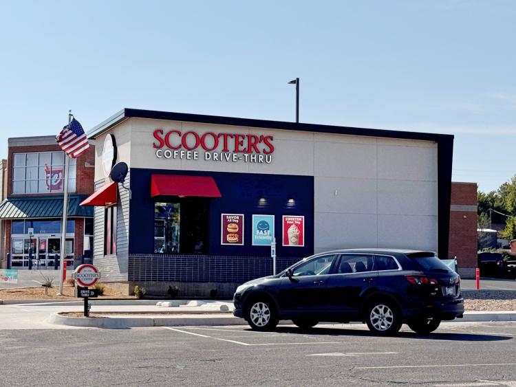 Scooters Coffee is located in the parking lot.