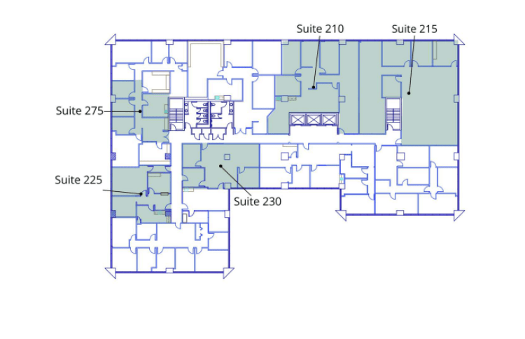 - Floor layout allows flexibility in planning for individual offices or open areas